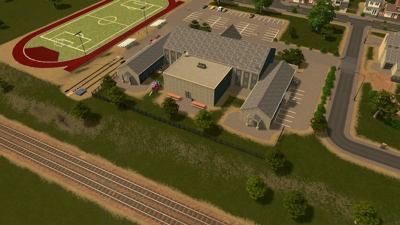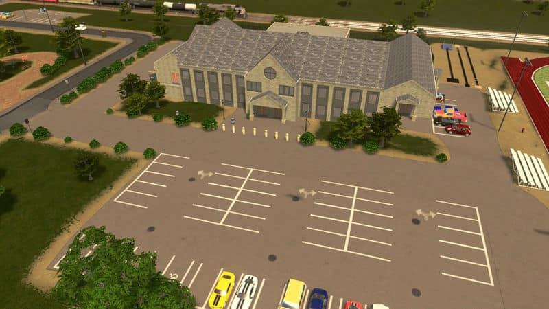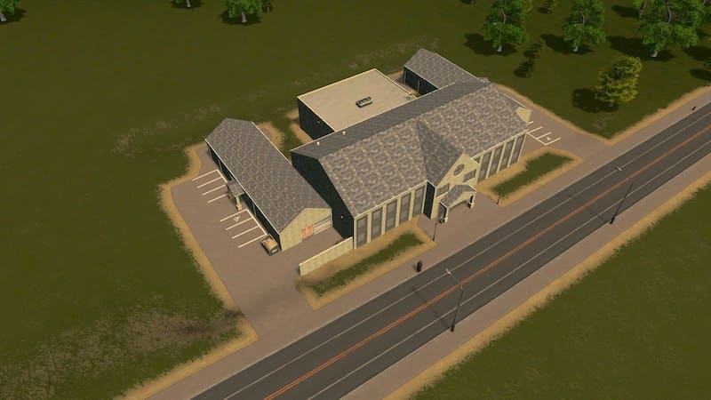 Have an education alternative for your cim kids! This private school was originally meant to be a sub-building for my Catholic Church but I decided to make it a stand-alone asset. It still takes its design from the church and will look nice next to it as a Catholic private school or Sunday school (CCE anyone?). But you can place it wherever you want, don’t let me tell you where to put it. The asset is an elementary school with a high school sub-building. 1st picture is what you get, other pictures show the building decorated using More Beautification mod and trees placed with Prop & Tree Anarchy mod.