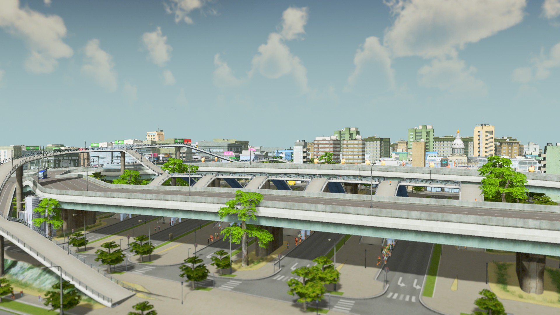 Updated Version: The highway lanes in the middle are one level higher. The roads to drive on and off are removed, so you have to do it yourself, if you need these ramps. This needs to be because you can place it better as Version A.