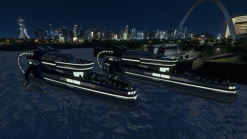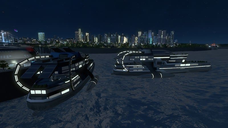 Neon Futuristic Passenger Ship Large Water Sea Park Luxury