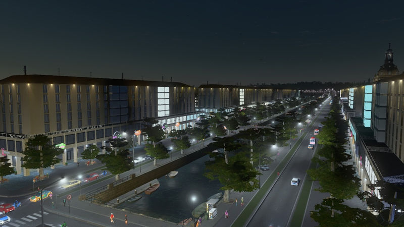 Damit es am besten aussieht plaziert die Gebäude entlang einer straße in einem eigenen Distrikt und glättet das Terrain.