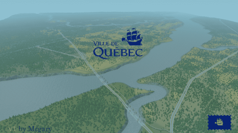 Map of Quebec City, generated from real heightmap terrain, with most major highways and railroads added. Plenty of resources and train/ship/plane connections available.