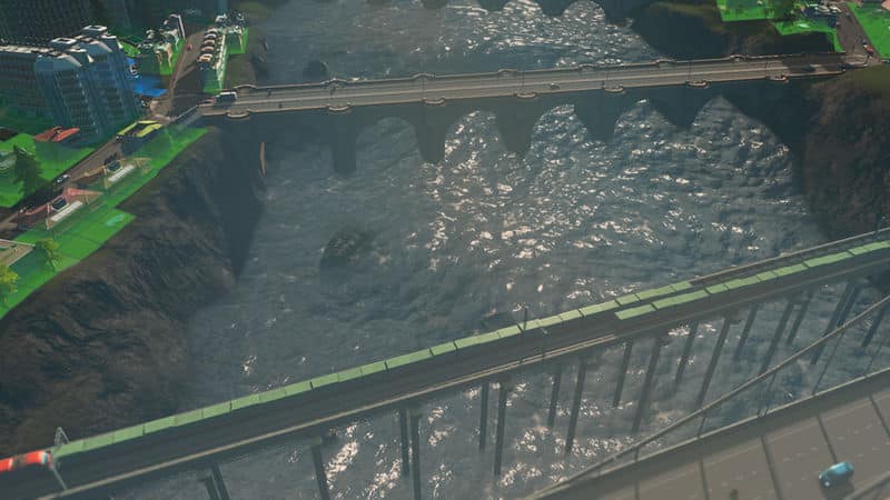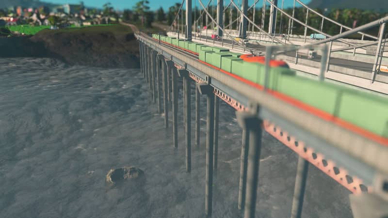 Although not essential to load the model into the game, a number of mods are required in order to be able to place road pieces on top of the bridge without their associated bridge furniture which would obviously clash with the model and look terrible. NO pillars mod, Fine Road Anarchy, Move It, and Fine Road Tool are all recommended to be used in combination to achieve this.