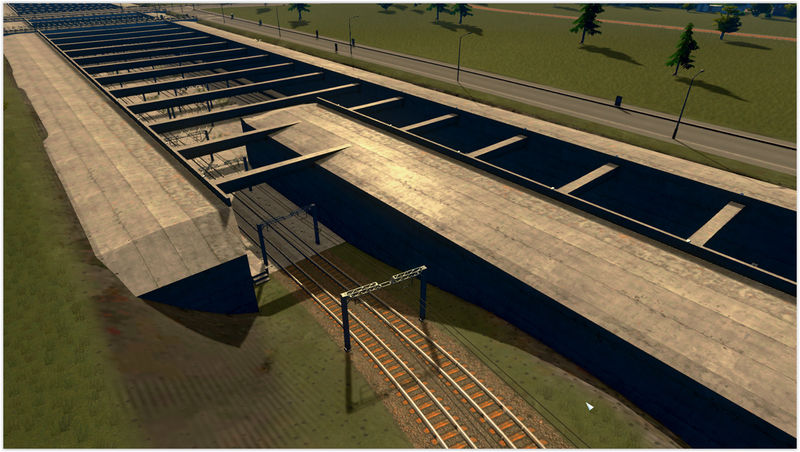 Submerge your railway network into these reinforced trenches. Build up to six parallel tracks with zero-grade roads and pathways running accross. These sections are inspired by the Alameda Corridor, a 20-mile freight connection in Los Angeles, California. It’s more or less proof-of-concept, the mesh is quite plain / low poly.