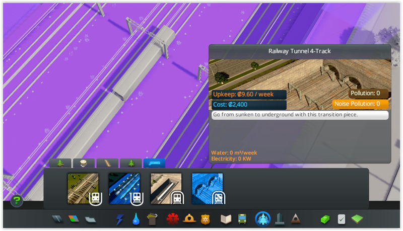 Connect your entrenched railroads with underground lines or sunken stations. Also works well wherever you need extra space for diagonal roads and major avenues: you can just build on top.