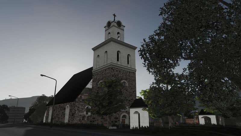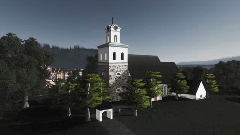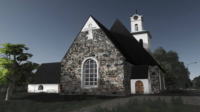 The cross at the top of the tower is a separate (but not required) prop, available at Rauma Church cross.