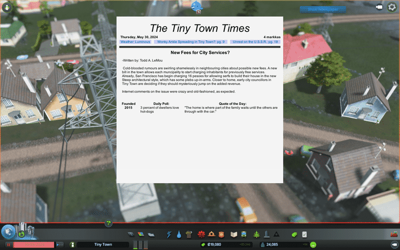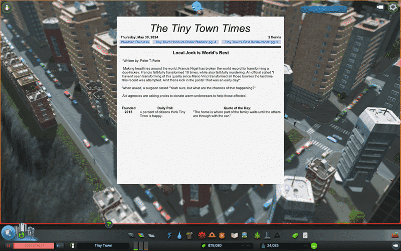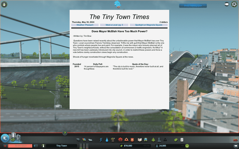 This is a newspaper mod in order to re-live the glory days of simulated newspapers in our simulated cities.