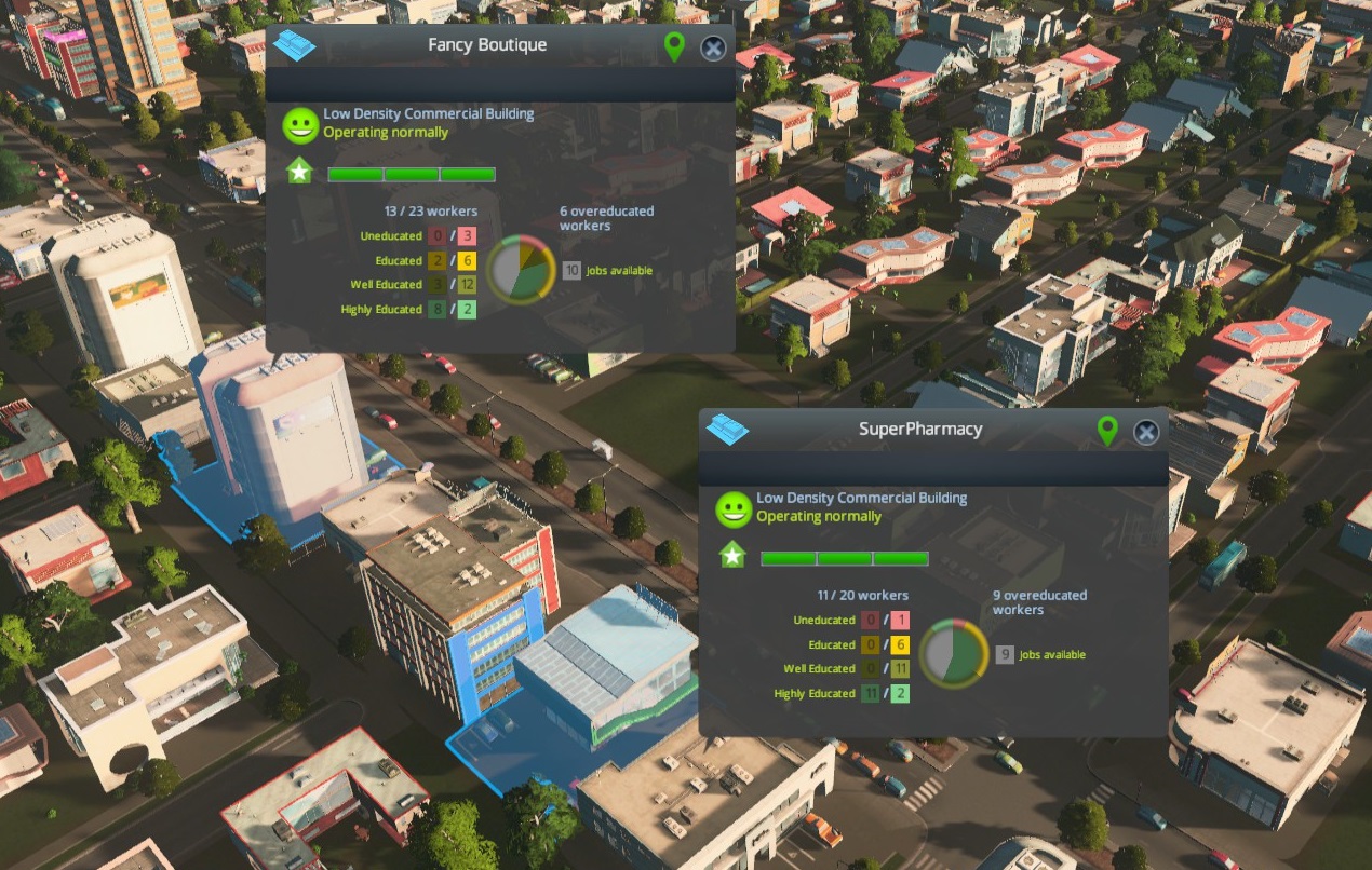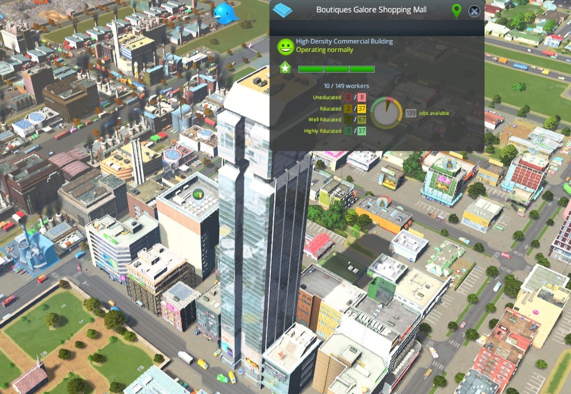 – Tweaked pollution levels, water and electricity consumption, garbage accumulation and income of different buildings.