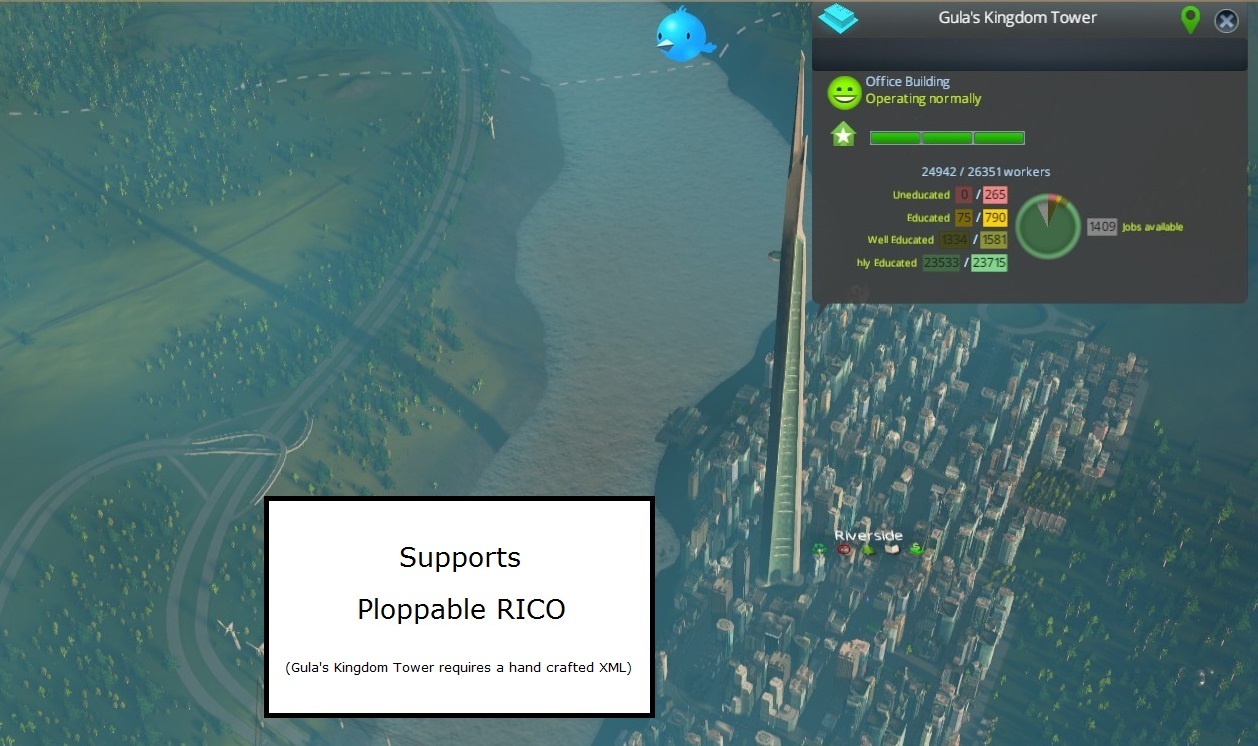 And Gula’s Kingdom Tower to show it supports the Ploppable RICO mod (values might change)