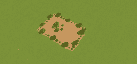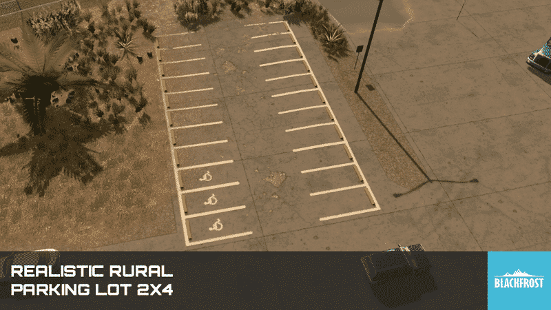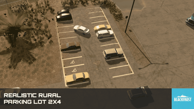 A realistic rural parking lot with some entertainment value. Use this as a filler and to increase the land value around it.