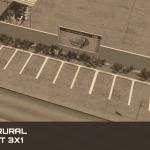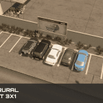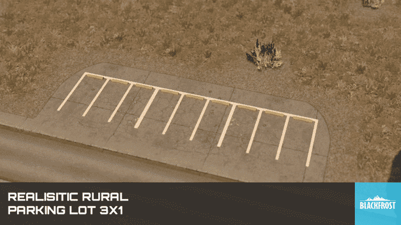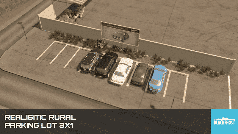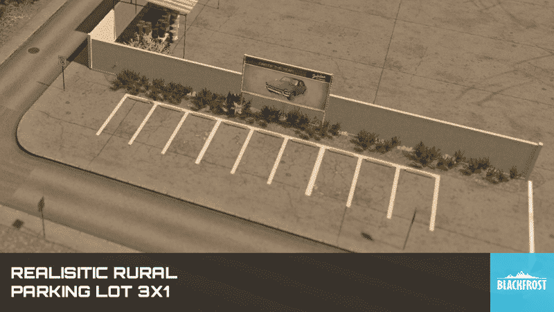A realistic rural parking lot with some entertainment value. Use this as a filler and to increase the land value around it.
