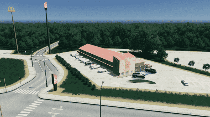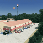 This asset contains the main hotel building and two sign props (one being a high-rise sign and one being much smaller) that can be freely placed.