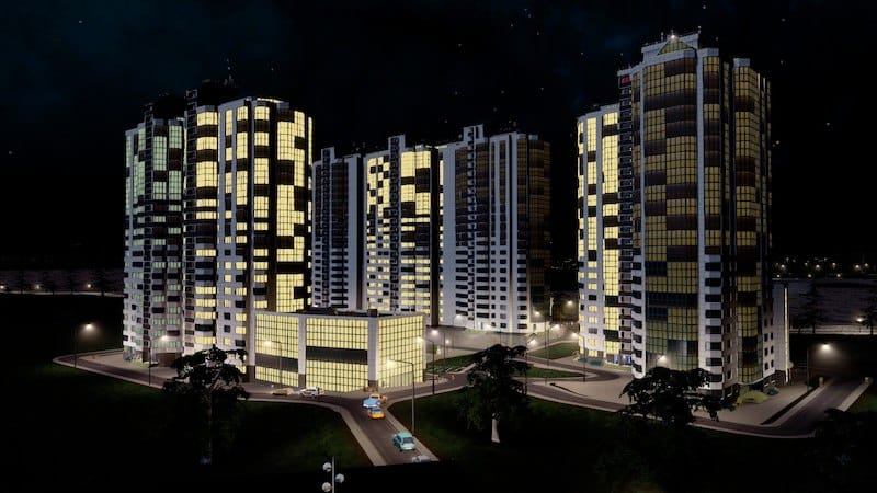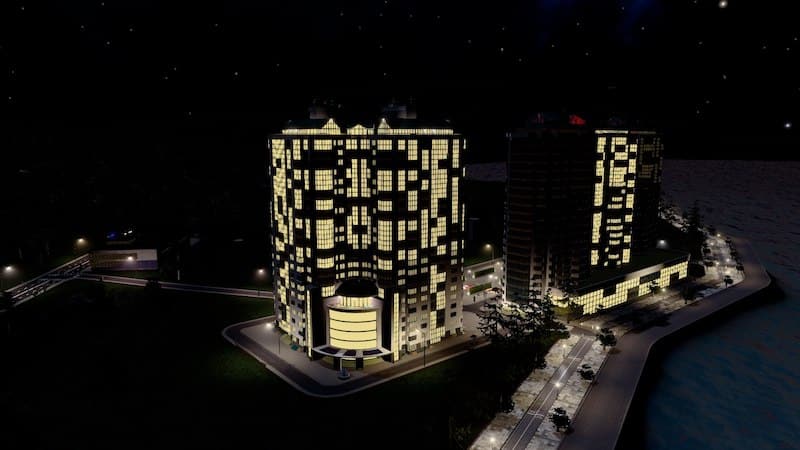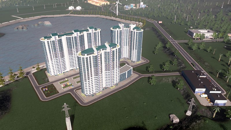 But now I finished 3 buildings of residential complex “Admiral”. Original complex located in central part of Krasnodar near the river Kuban. These buildings oriented for rich citizens, there are many 2-floor flats and penthouses. Complex contain 5 buildings, 3 of them you can find in my workshop. Another buildings (the first; and two towers, built in 2017) are being created.