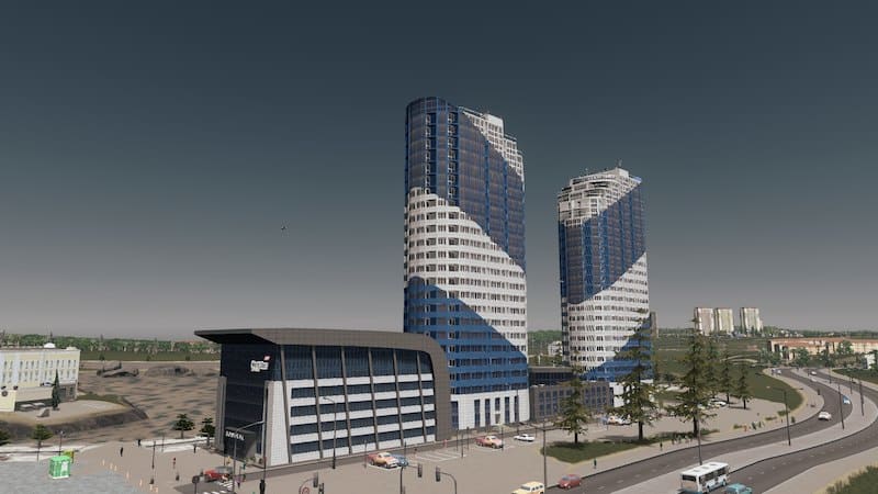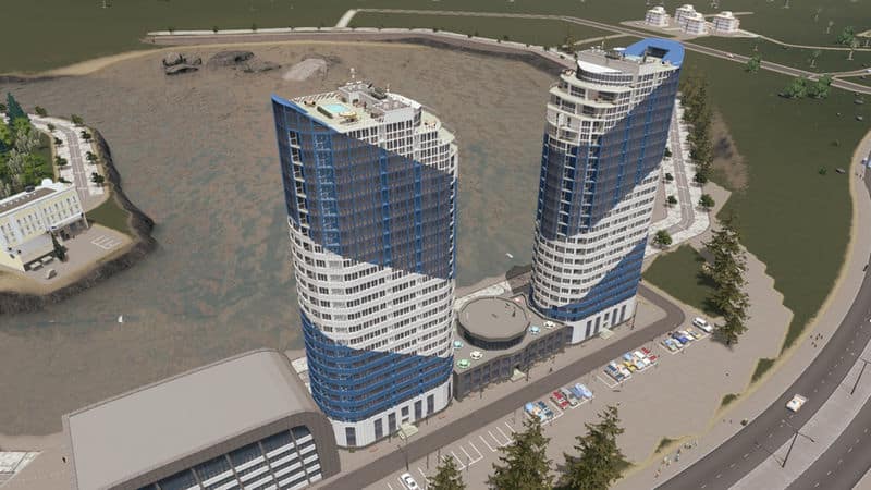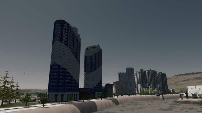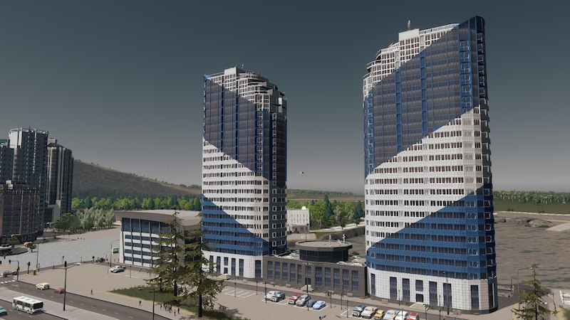 One more new building of residential complex “Admiral” is complete! Original complex located in central part of Krasnodar near the river Kuban. These buildings oriented for rich citizens, there are many 2-floor flats and penthouses. Complex contain 5 buildings, this is last building of complex (built in 2017). Original composition include 2 mirrored towers, entrance (included as individual asset) and sportcomplex (find it in my workshop).