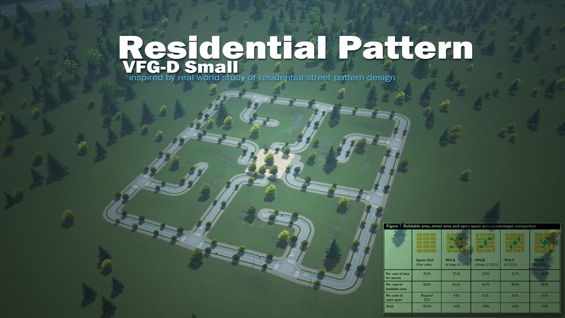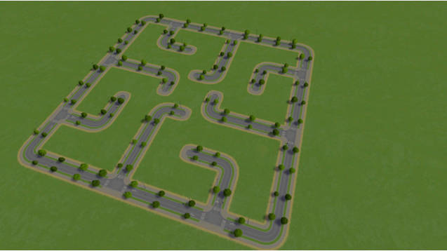 Residential street pattern (small version) for good traffic-efficiency and looks. Actually inspired by real world study of residential street pattern design: