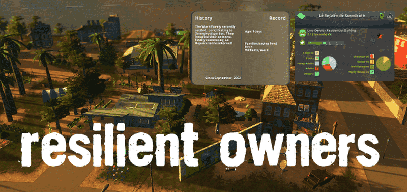This mod aims at stepping away from the disposable status the buildings have in the game. Cims can be pictured as more than just beings needing to be provided with services. If they would acquire an attachment to the places they visit, those buildings would not get abandoned to the mere problem. This resilient behaviour from the cims can then be the start of little stories around your town.
