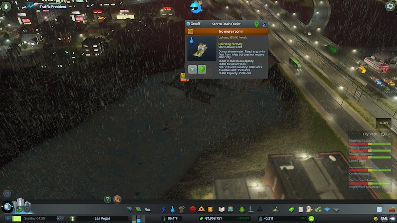 Landfill Full – There is not enough outlet capacity within this district. Build additional outlets or wait for the storm to lessen.