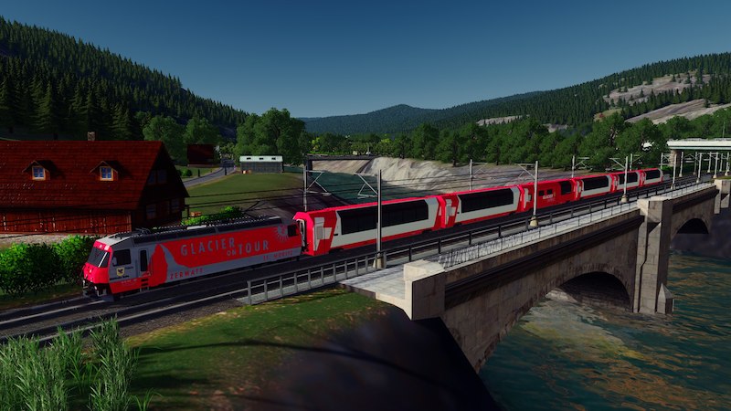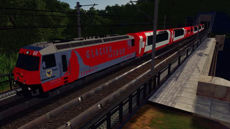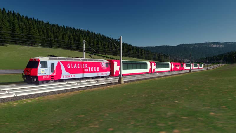 Rhätischen Bahn Ge 4/4 III Electric Locomotive and Glacier Express coach.