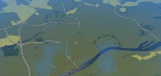 Things to note: Because this map was designed based around the city I wanted to create here for my YouTube series, many aspects of the map are tailored to my playstyle. This is why the map has highway connections where it does (only 2, and on both far-sides of the map). In addition, I wasn’t planning on worrying about water pollution, as I was going to use custom assets for that anyway, and simply created the map as I saw fit aesthetically. This is why there is no water current in the ocean – and the only existing water current is coming from the water source in the mountains on the northeast side of the island. Because of this, custom assets are recommended for sewage treatment. While it’s not impossible to play this map vanilla, keep in mind that the map was made with the assumption that anyone who wanted to play it would be using mods and most likely playing with the 25-tile mod.
