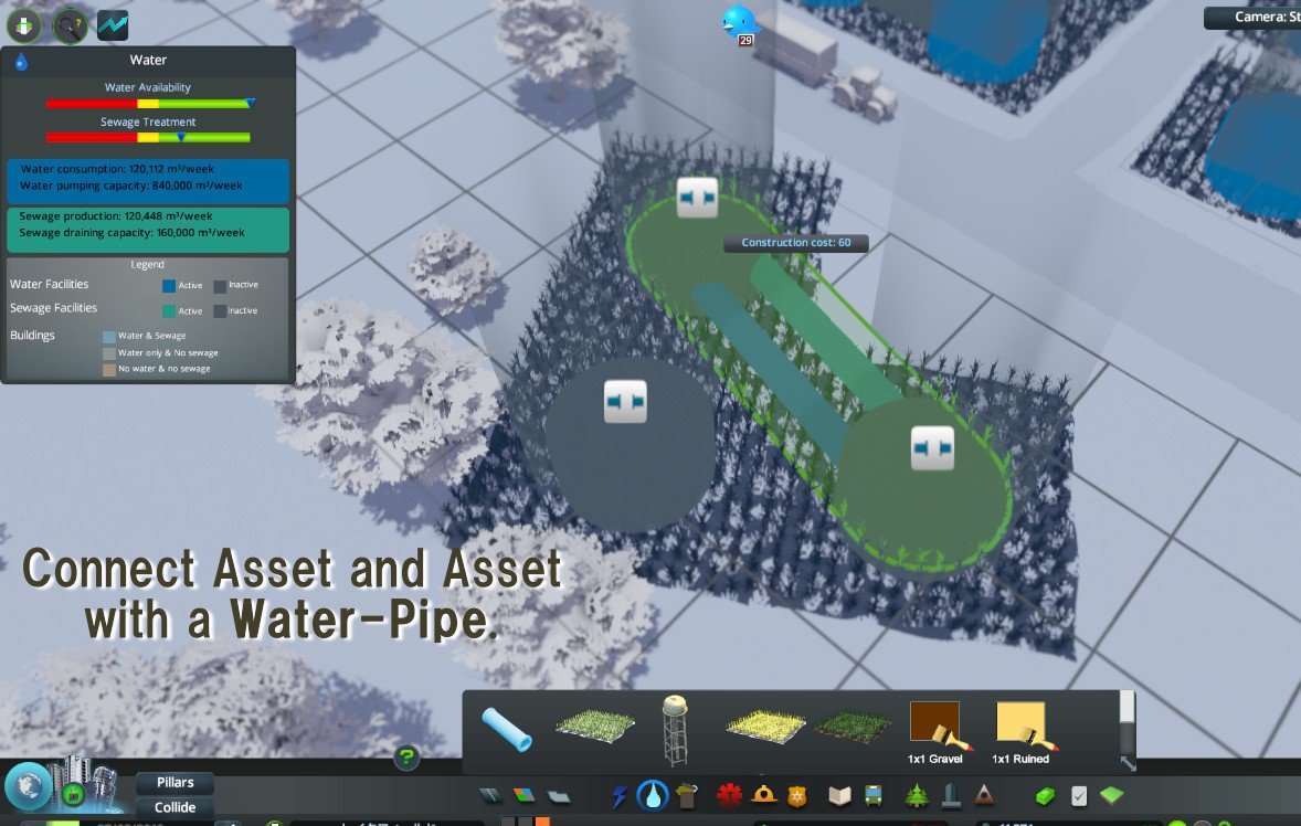 – Connect Asset and “Water-pipe” after plop it, “Unconnected icon” will be disappeared.