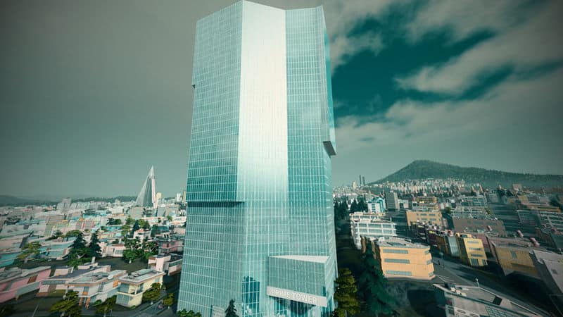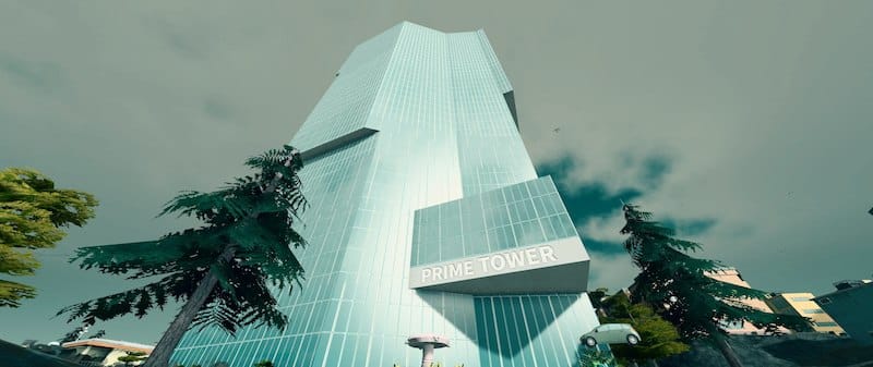 With 124 metres height this highrise is taller than the vanilla models, but doesn’t dwarf them as much.