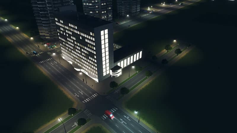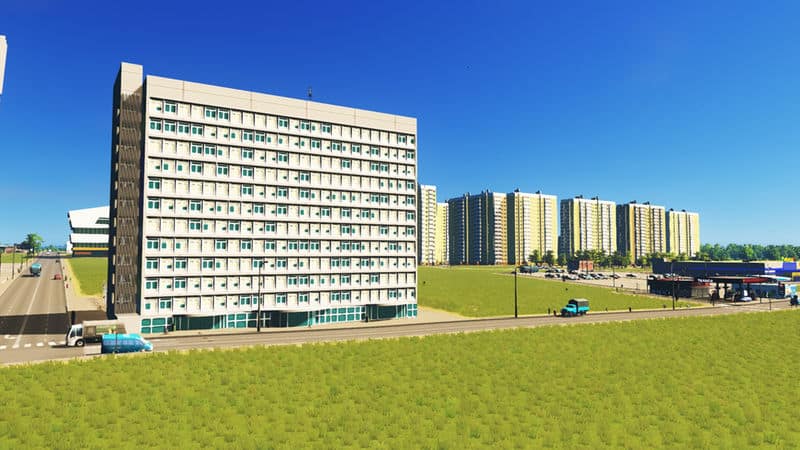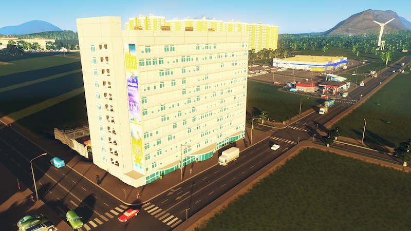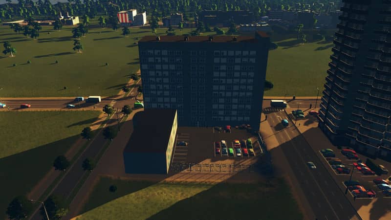 В игре выполнено без пристроек (они кошмарны), вместо них расположена парковка.