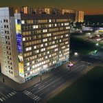 Реальное здание построено еще в союзе, дизайн советский, но некоторое время назад серьезно обновился фасад до современного. Я работаю в этом здании на 2 этаже.