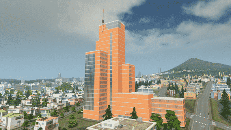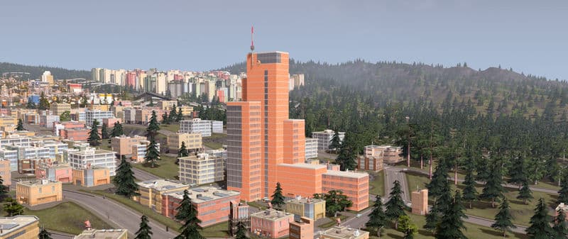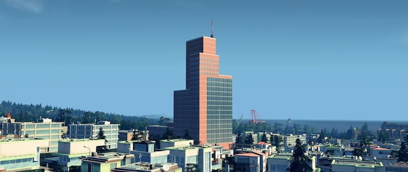 The Swisscom Tower, better known as “red tower” from WInterthur, Switzerland. With a height of 100 Meters it’s IMO a nice highrise for early game that doesn’t make the vanilla buildings seem like miniatures.