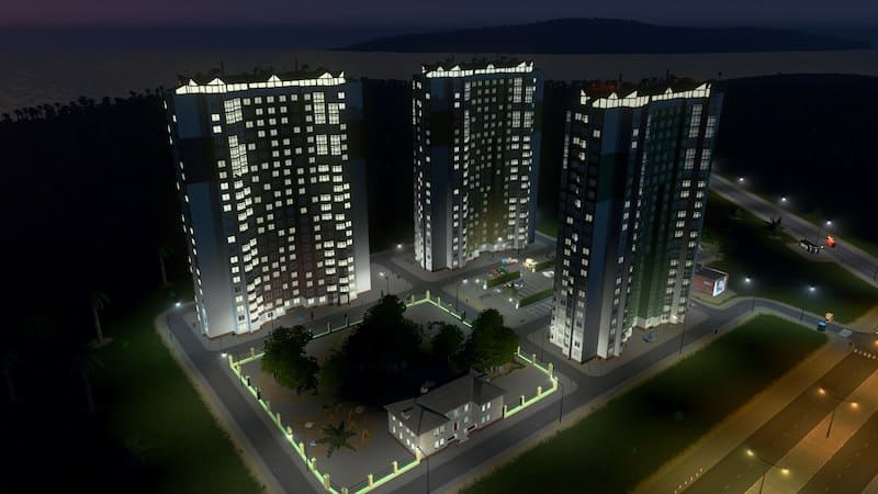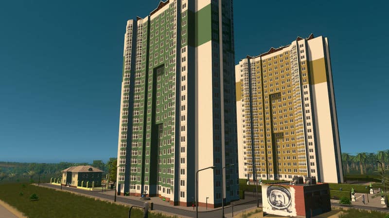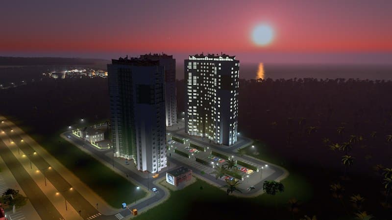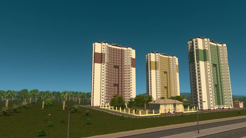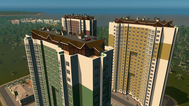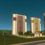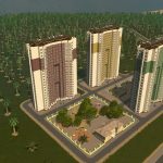 It’s time to present you new asset based on residential complex “Zvezdnyi” (may be translated to english as “stellar”), located on intersection of streets Shkolnaya and Filatova near central part of Krasnodar. Original building called “Vega” became first 20+ floor buiding in this southern city. Original complex contain three buildings with yellow, green and brown colors. In game I added one more color – blue.