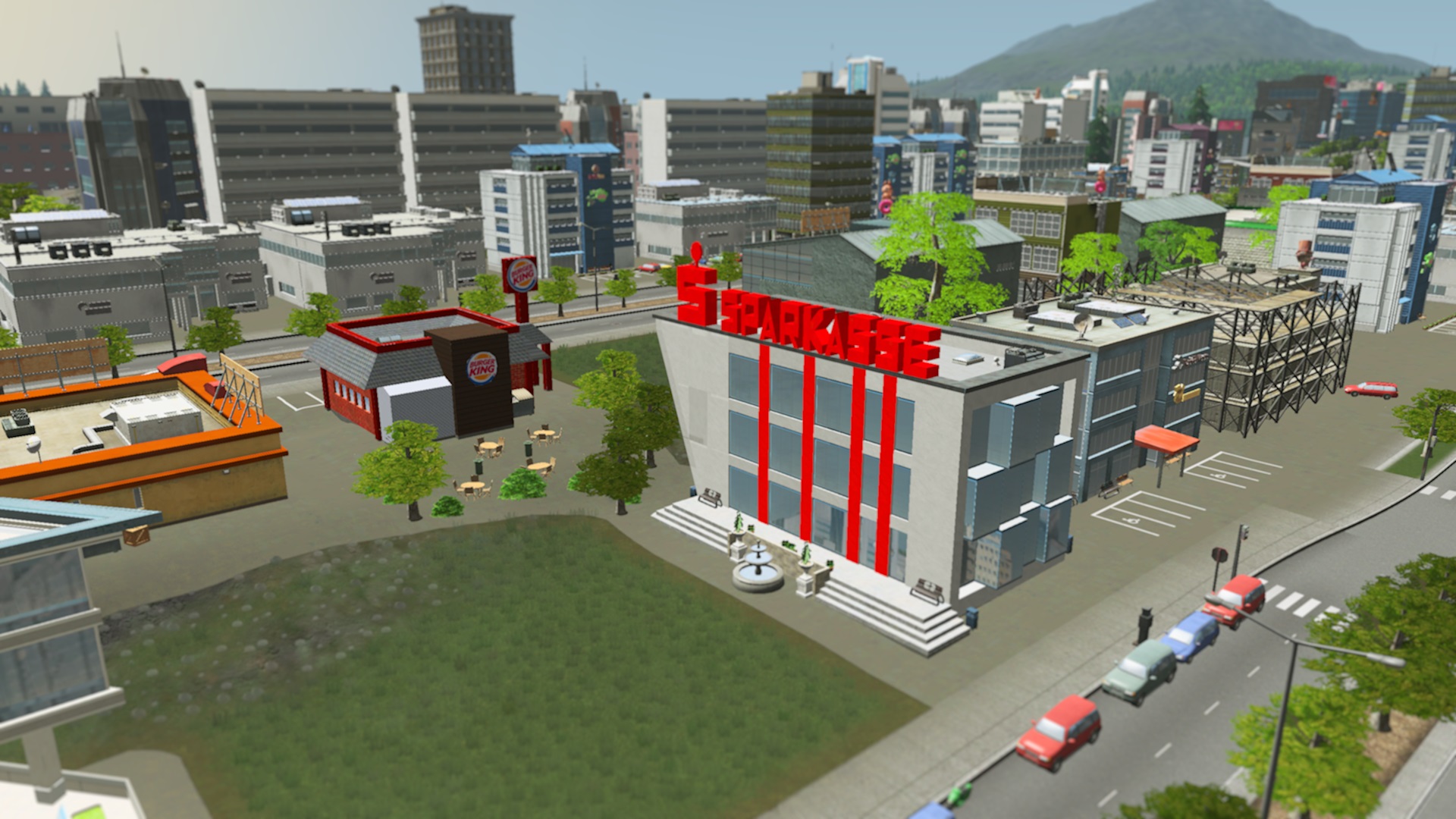This is a german bank called Sparkasse. It is a lvl 1 office building (4×3).