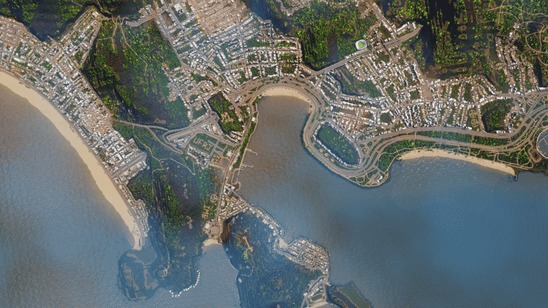 Faithful adaptation of Rio de Janeiro infrastructure, 39 of 160 districts. All facilities and roads are named.