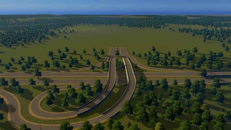 Note: a lot of downtown area highways are a tiny bit above the ground. Ihis makes it very easy to make nice clean underpasses underneath them using the ingame terrain brush. The normal height difference is 12m. So since the flat land is all 90m, set your level brush to 78 to make an underpass underneath the highway See the double railroad line underpass as an example of how this works.