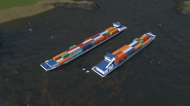 Ploppable versions of the River Container Ship Pack 3. I highly recommend you use the Loading Screen Mod to share meshes and textures with the functional ships.