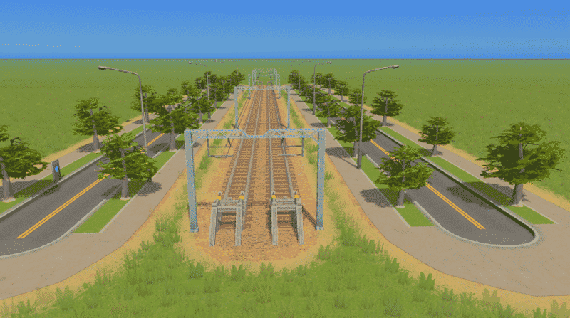 This Is Two Roads With Trees With A train Track In The Middle