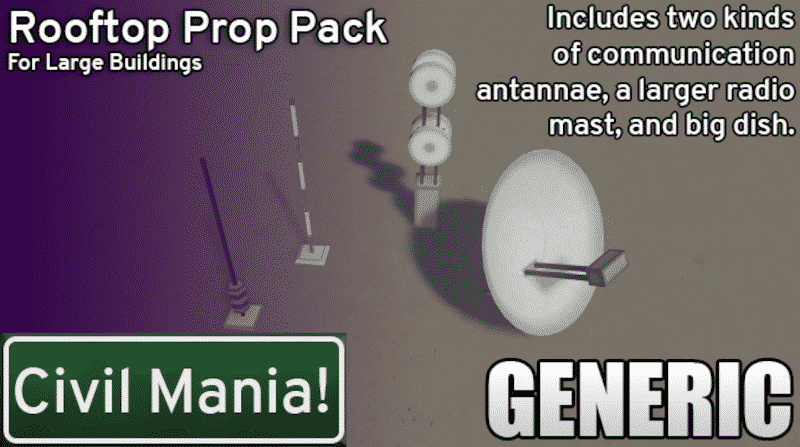 What you need are BIG MEDIA things. And I have just created such things! Here you’ll find a nice big dish, a nice big radio mast, and two antennae to serve your BIG BIZ needs.