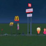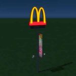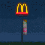 McDonald’s rotating sign pole with a curtain and lights.