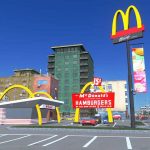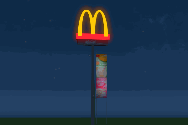 マクドナルドの回転式看板です。垂れ幕とそれを照らすライト付き。(実際に投光はしません)