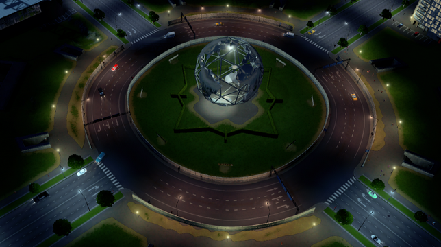 As you can see in the pictures, you can plop this roundabout-park everywhere. It doesn’t need to be attached to a road and that’s why I kept it from producing garbage and it can’t burn, so it won’t cause any trouble.