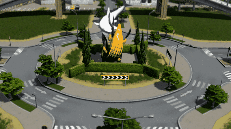You can plop this roundabout-park everywhere (it comes along without the roads and is circular). It doesn’t need to be attached to a road and that’s why I kept it from producing garbage and it can’t burn, so it won’t cause any trouble.