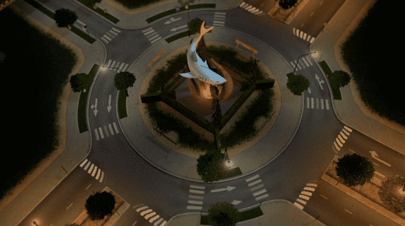 You can plop this roundabout-park everywhere (it comes along without the roads and is circular). It doesn’t need to be attached to a road and that’s why I kept it from producing garbage and it can’t burn, so it won’t cause any trouble.