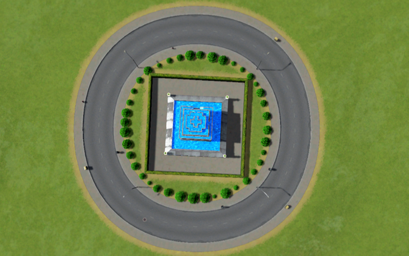 Ich habe diesen Brunnen in einen runden Park umgewandelt, damit man ihn in die Mitte von Kreiseln platzieren kann.