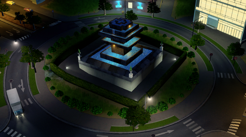 I took this fountain and remodelled it to make it ploppable in the center of roundabouts.