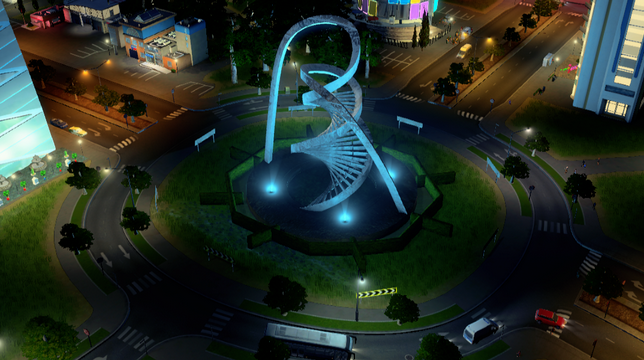 As you can see in the pictures, you can plop this roundabout-park everywhere. It doesn’t need to be attached to a road and that’s why I kept it from producing garbage and it can’t burn, so it won’t cause any trouble.