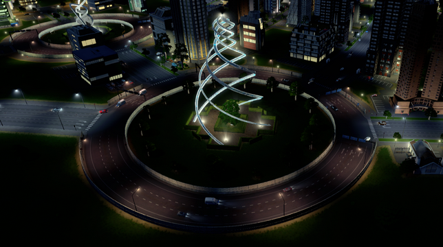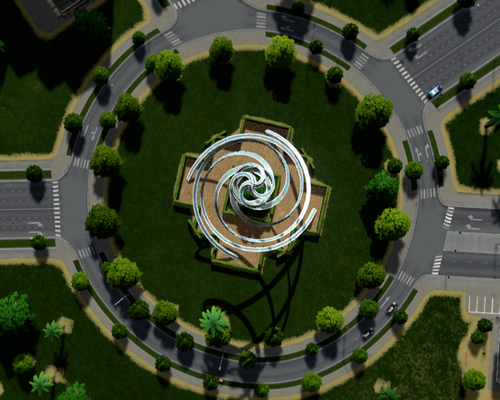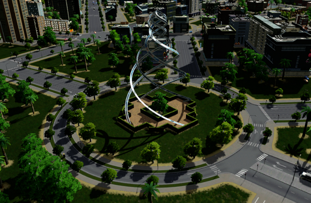 I took this unique building , changed it to a park, made it smaller and remodelled it to make it ploppable in the center of roundabouts. Thanks for the object, Visu!