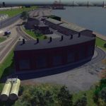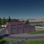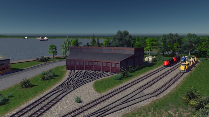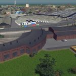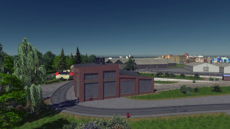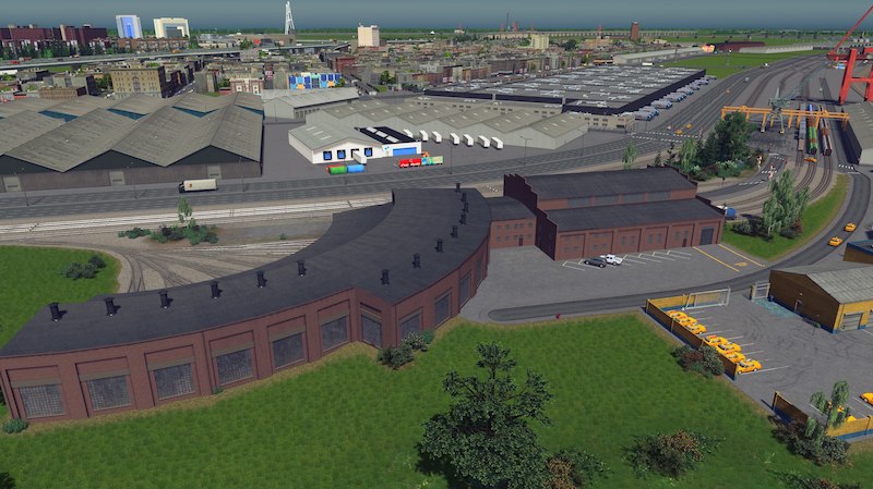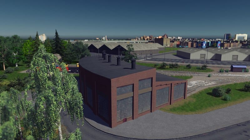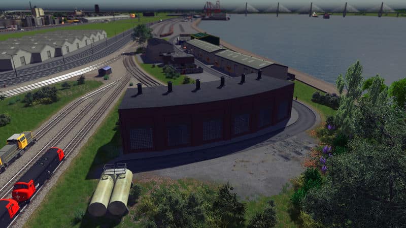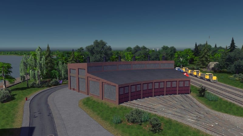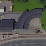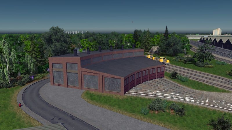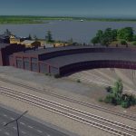 A 3 stall roundhouse for the rail enthusiasts! It snaps together for easy placement, which means the first building will need a road connection. The road can be deleted later as the building doesn’t need it. No tracks are placed by default as their layout depends on the size of the structure. I used One way train tracks in the screenshots.