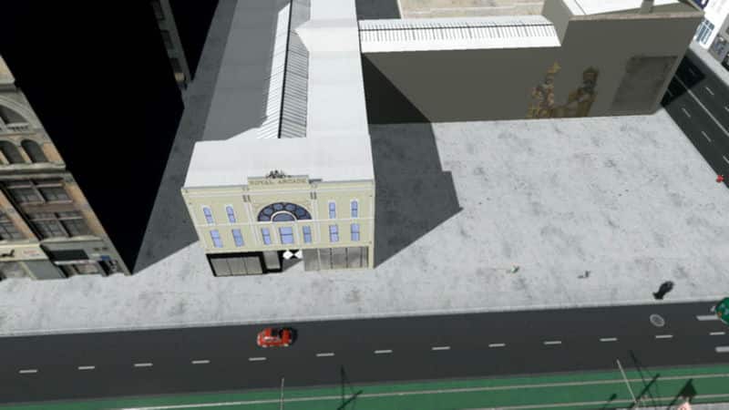 Royal Arcade comes in two buildings, the main arcade 2×8 tiles , and side annex 1×5 tiles. The ideal placement of the two is shown in screenshots here, but you can use them however you like seperatly or together.