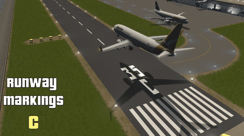 Pimp your airport with these common runway numbers and markings. You will need some sort of anarchy mod (I recommend sharp road angles, since it also enables you to make more realistic highway interchanges) to place most of them, since under normal circumstances you can’t place an object on top of a road/highway/runway/taxiway.