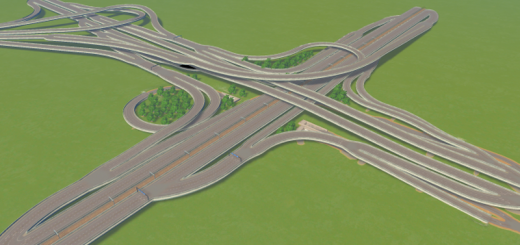 For this interchange to work, you’ll need to have Network Extensions installed. You will probably need Fine Road Heights, Road Anarchy/Advanced Road Anarchy and the Sharp Junction Angles Mod as well, as they were used to build the interchange.