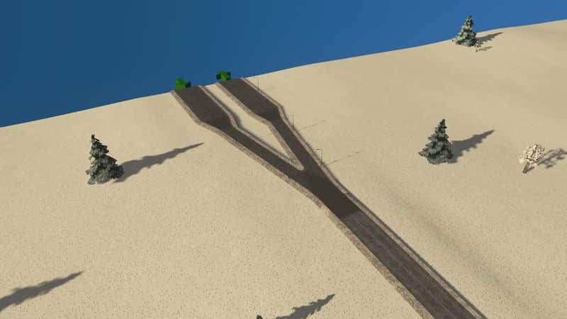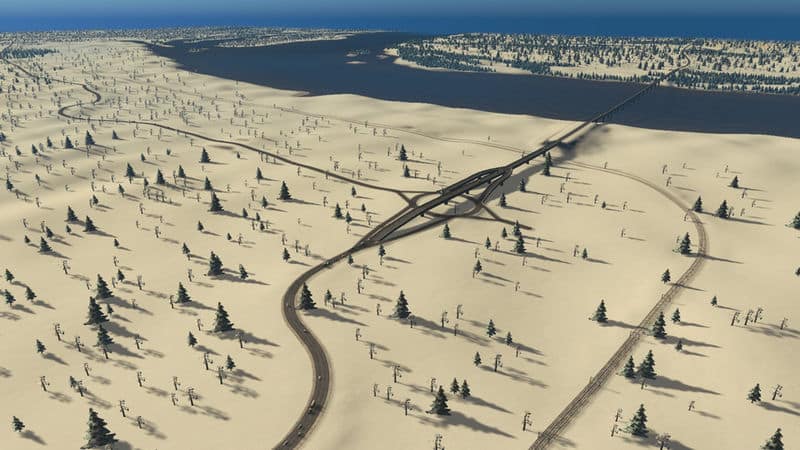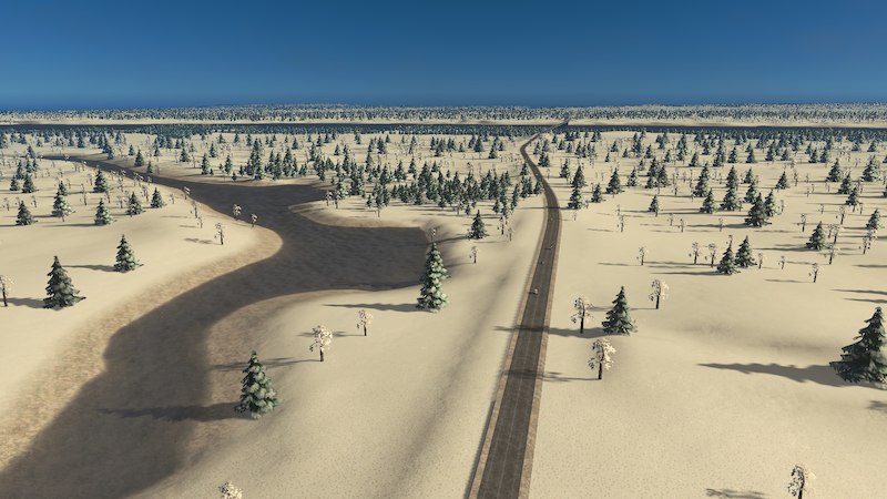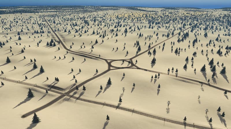 В качестве шоссе, для реалистичности, была использована двухполосная дорога 3й категории. Если вы хотите проложить более широкие дороги используйте мод на 81 клетку чтобы добратся до края карты, где в качестве соеденения с внешним миром было использовано обычное шоссе (3 полосы в каждую сторону).