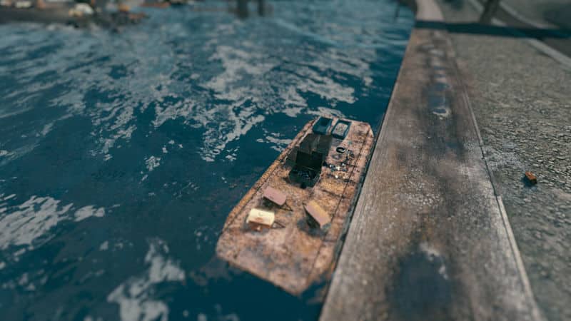 This rusty black barge – available in the misc. props menu – is a great addition to any harbor or seafront. Jut plop it down, then add additional props on top to your liking! This version sports a rusty, bare metal hull, with red protective paint.