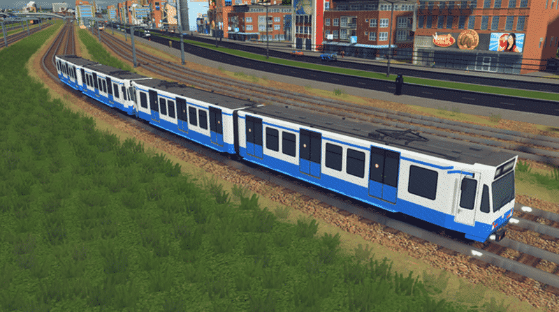The Amsterdam S1/S2 series metro/tram vehicles in metro configuration with lowered pantograph and extended running boards (because the Amsterdam metro stations are wider than the tram stops).